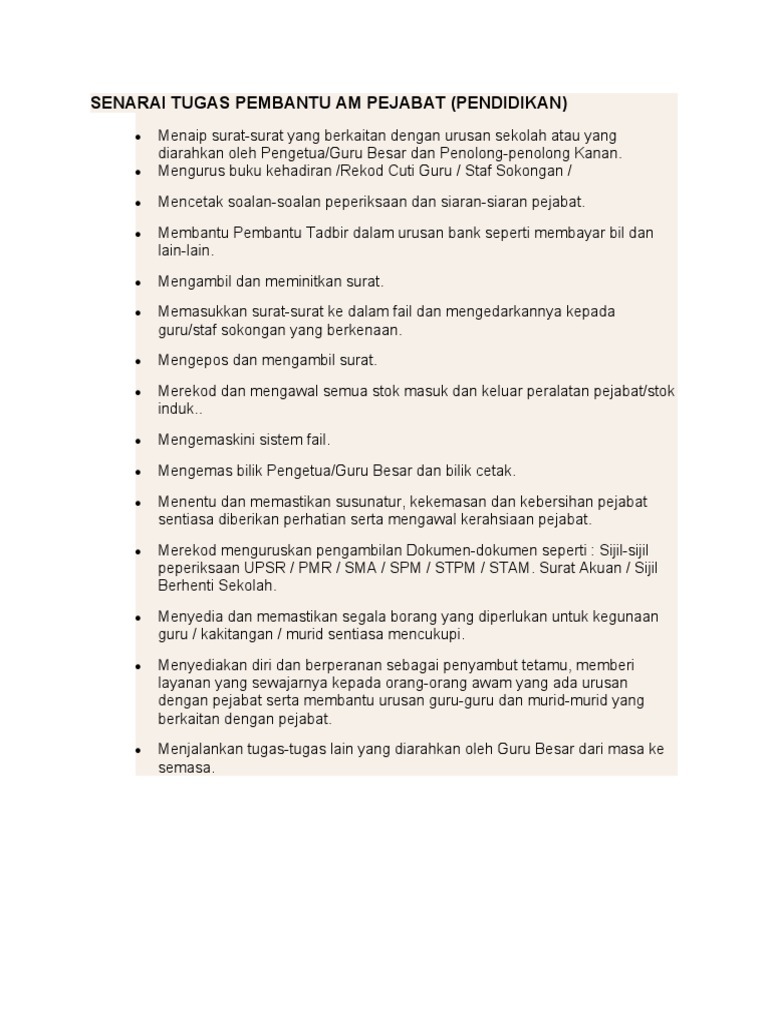 Senarai Tugas Pembantu Am Pejabat Pdf