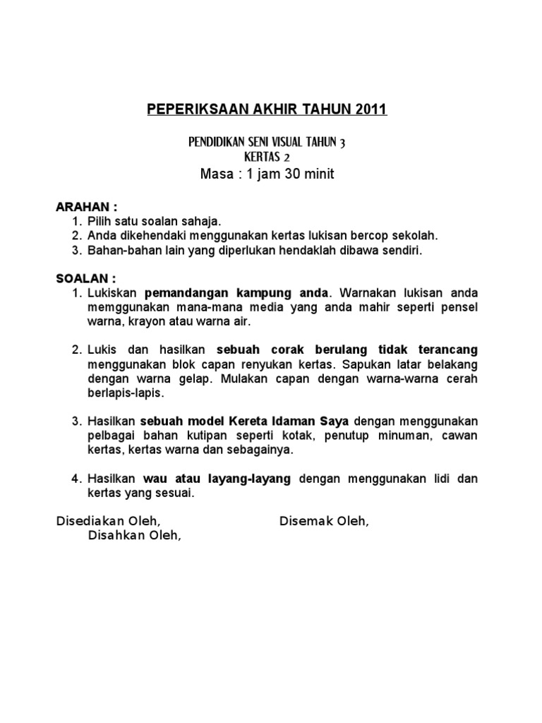Soalan Peperiksaan Dunia Seni Visual Tahun 2 Kssr Pdf