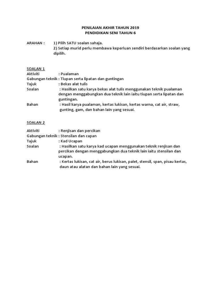 Bermacam Macam Peperiksaan Akhir Tahun Pendidikan Seni Visual Tahun 6 Yang Penting Khas Untuk Para Ibubapa Perolehi Pekeliling Terbaru Kerajaan